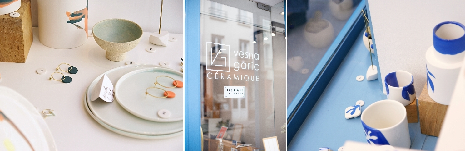 2018年には、パリの右岸から左岸に引越し、念願であった自分だけのショップ兼工房をオープン。日が差し込む明るいショップからは、ガラス越しに、ヴェスナが立ち働く工房が見えます。ぜひ立ち寄られてみて下さい。